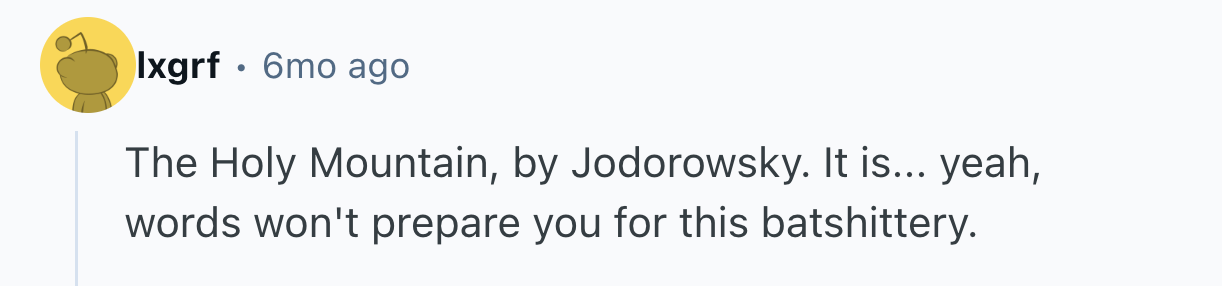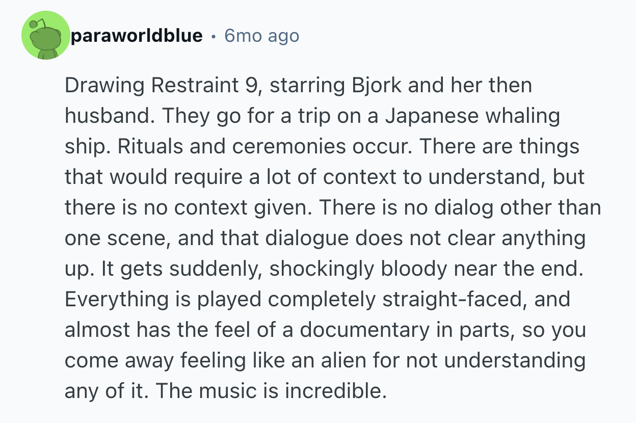That is why u/Duclaido requested r/AskReddit, “What is the weirdest film you’ve got ever watched?”